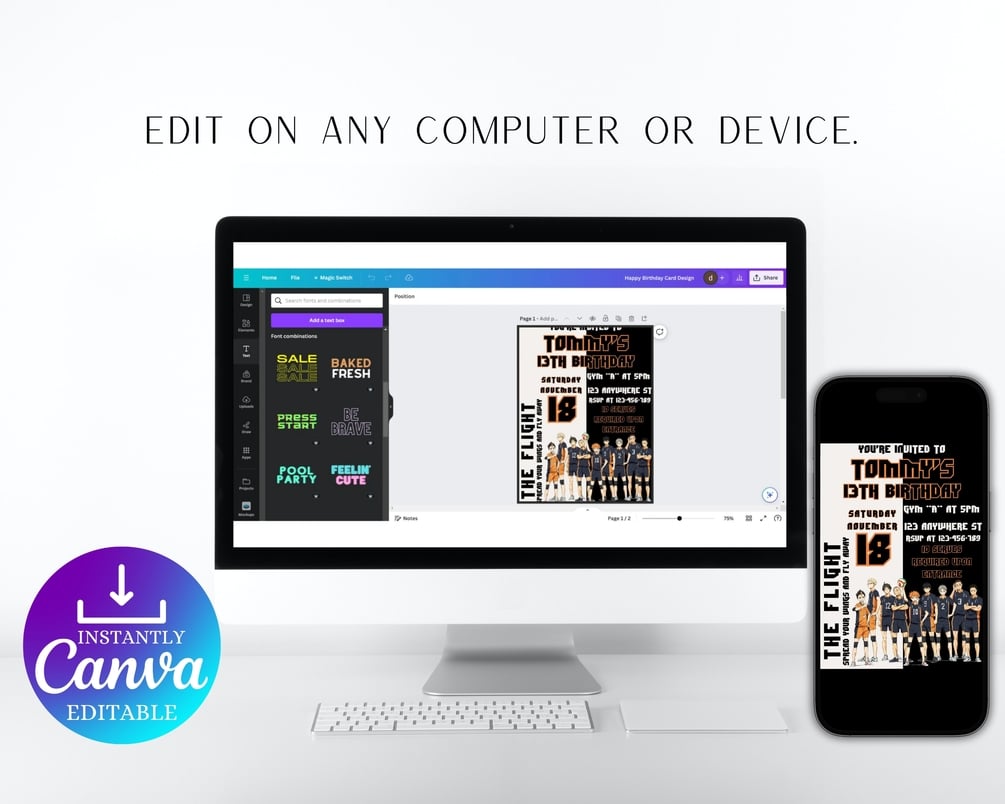 This Haikyuu Inspired birthday invitation template is easy to customize to your specific needs. You can change any text, font size, font type, and all the image can be moved or deleted.